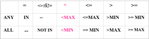 当能确切知道内层查询返回单值时,可用比较运算符(>,<,=,>=,<=,!=或< >),与ANY或ALL谓词配合使用。