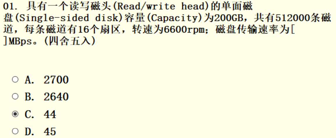 n—–磁盘容量(G); m—–磁道数; b—-磁盘传输速率(Mbps); r—–磁盘转速(rpm);