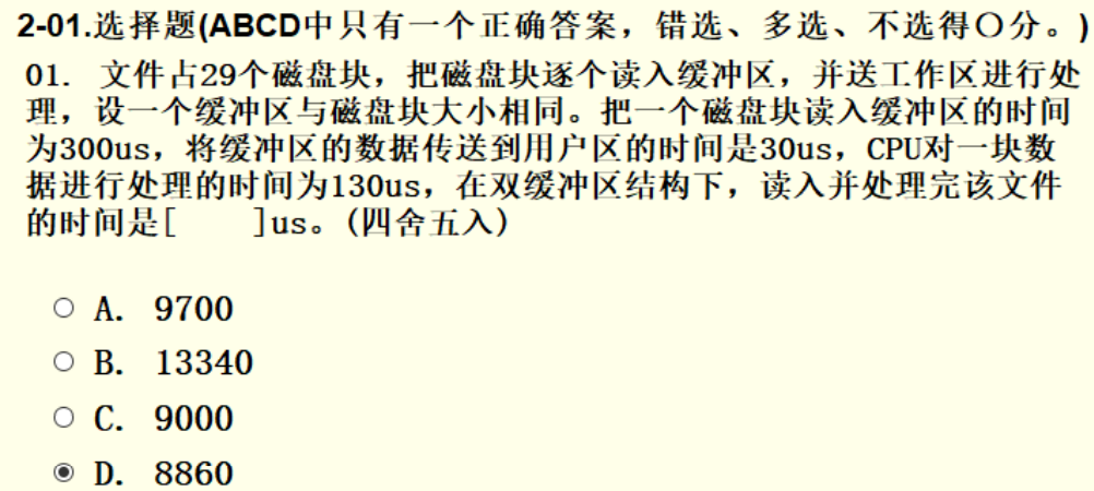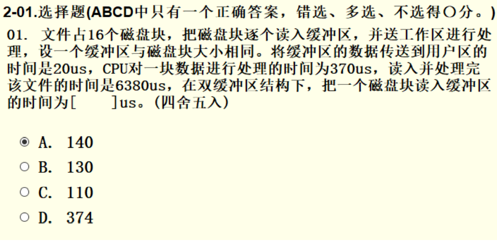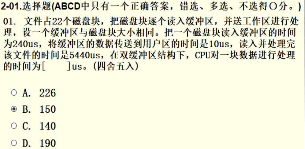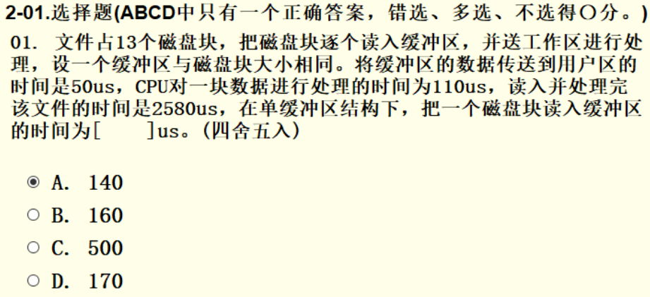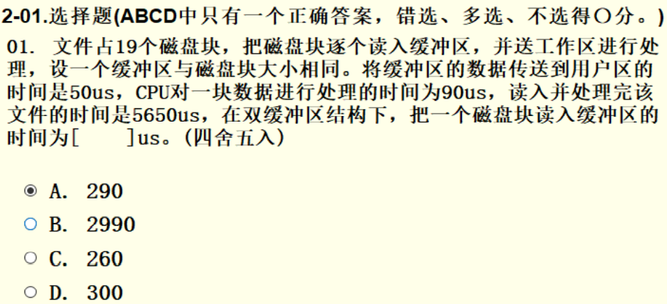 单缓冲区:$CPU中断频率=(A×1024)/m; CPU响应时间=10^6/(A×1024)μs;$