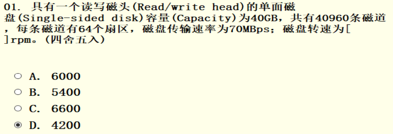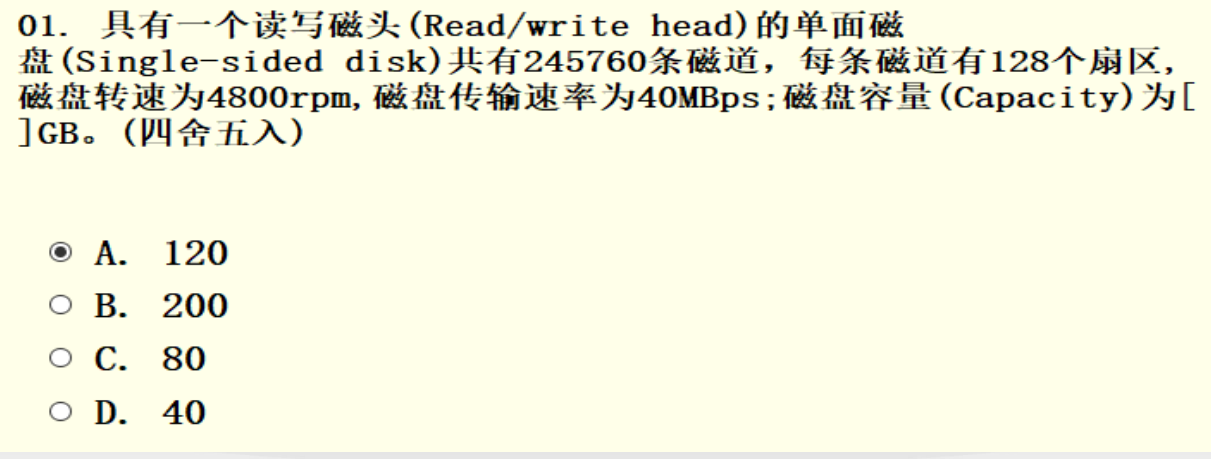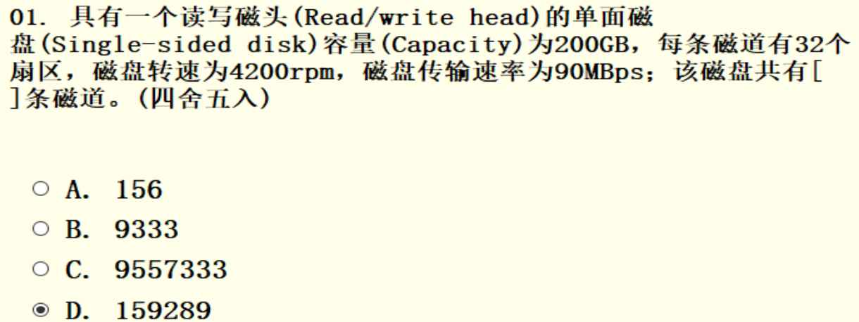 - 磁盘单轨容量=磁盘容量(G)/磁道数=n/m(G)