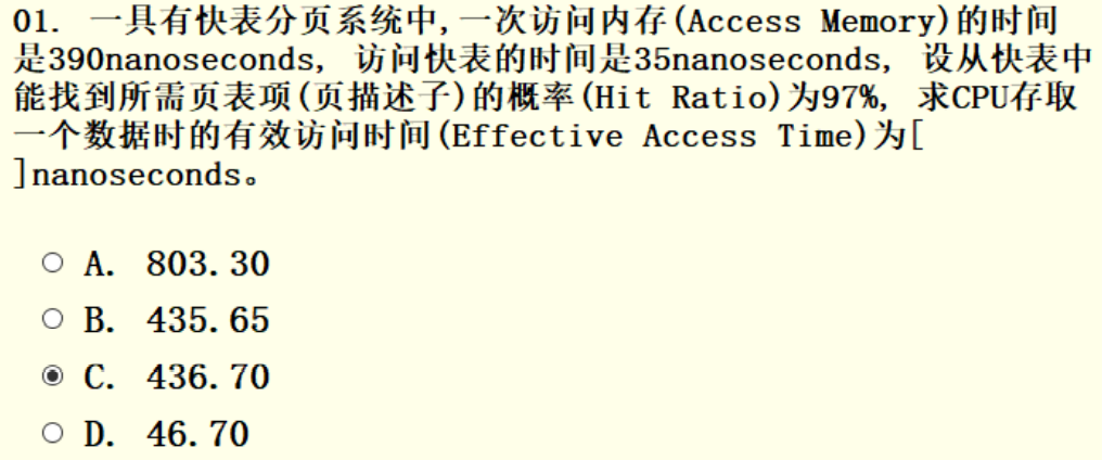 EAT—–一次存取有效访问时间; t—–一次内存访问时间; b—-快表访问用时; a—-快表命中率