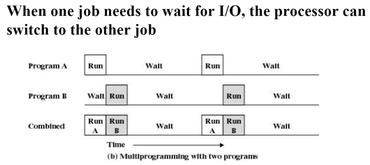 允许多道程序在内存中同时准备运行(多道),正在运行的程序暂时不能运行时(如I/O时),系统自动启动另外一道程序运行,之后在某一时间继续运行原来的程序。(感觉像空间换时间啊)