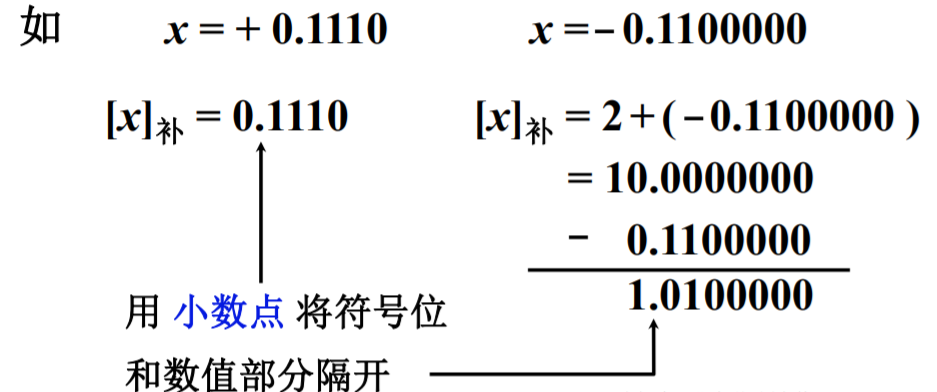 $[ x ]_ 补 = 1,1110;0.1001100000$