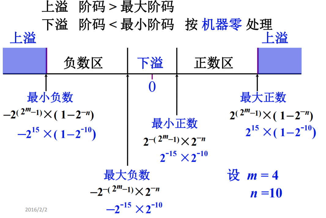 - 阶码下溢:超出阶码可能表示的最小值的负指数值,一般认为0。